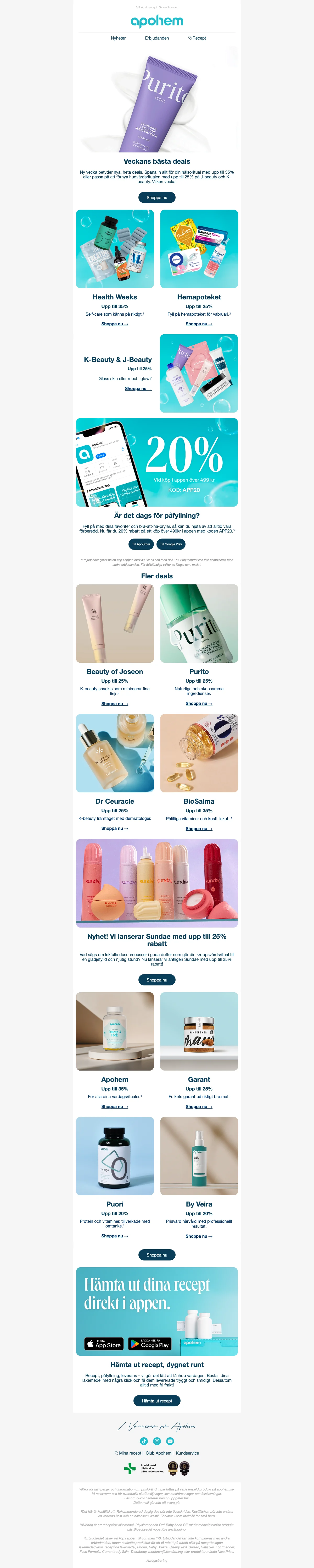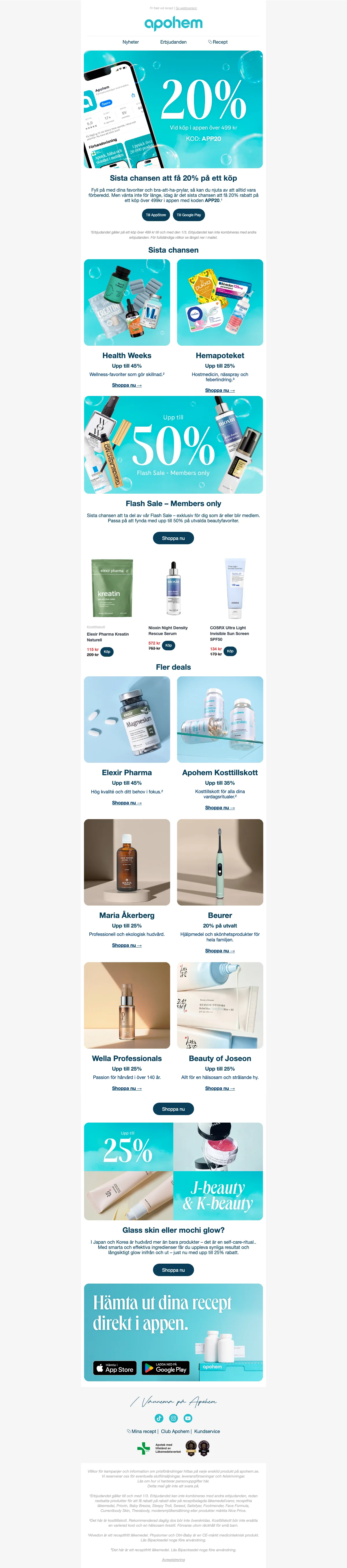 Apohem app-erbjudande: 20% rabatt vid köp över 499 kr