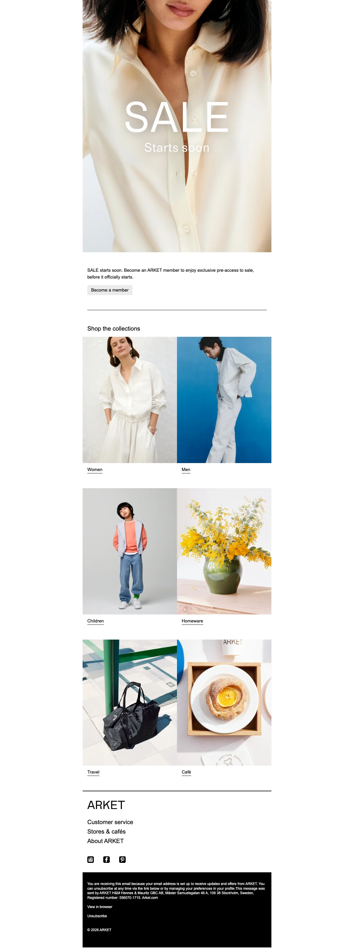 Ta del av spännande nyheter och erbjudanden från ARKET genom att prenumerera på nyhetsbrevet. Som välkomstrabatt får du även 10% vid din första beställning.