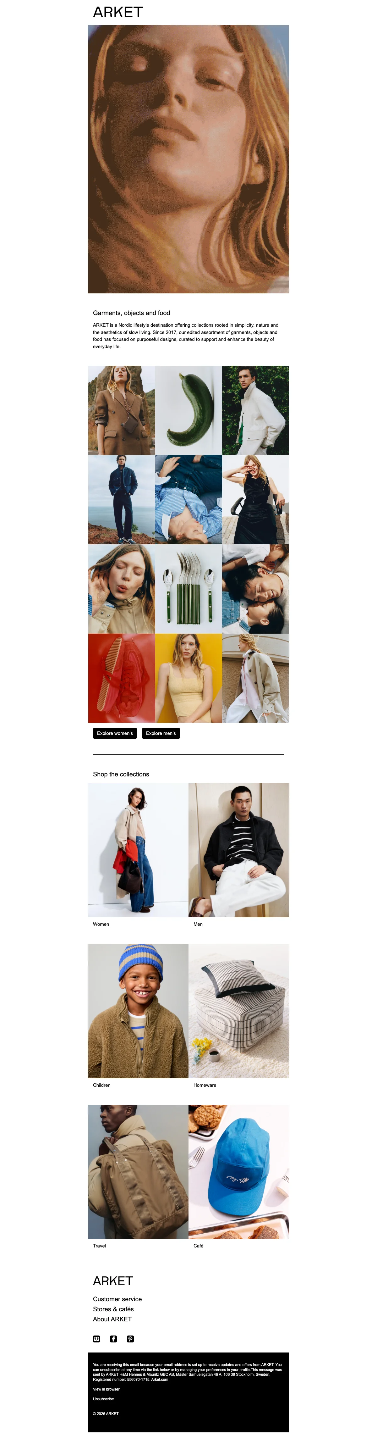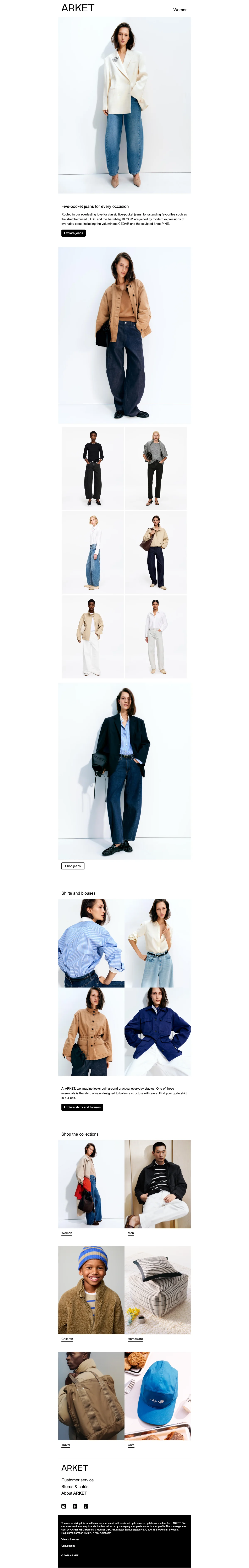 1. Klicka hem dina nya favoriter inom dammode, herrmode, barnkläder, baby, inredning, dofter och resväskor från ARKET. Du hittar ett brett sortiment av noggrant utvalda produkter som inspirerar dig till en vackrare vardag!
