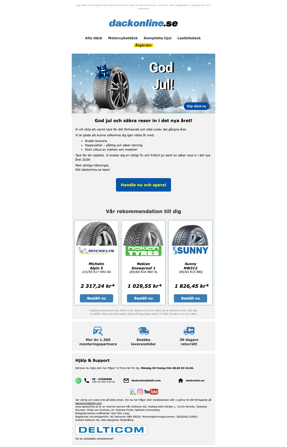 Behöver du hjälp med din beställning kan du ta en titt under Däckrådgivning. Där får du med hjälp av en guide veta vilka däck som passar din bil bäst. Du kan även ringa företaget eller fylla i ett kontaktformulär med dina frågor.