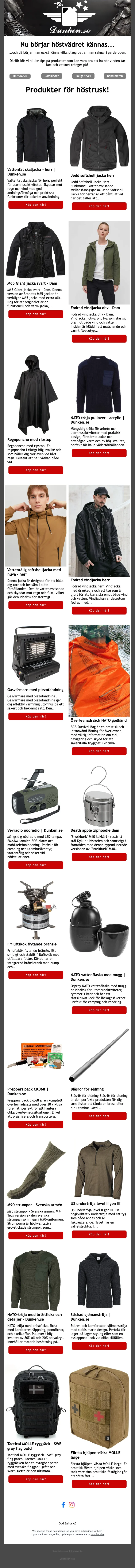 Kategorin för kampanjer samlar alla aktuella deals som det kan vara värt att titta lite närmare på. Det kan vara en deal på hoodie, jacka eller parka och här hittar du alltså bara sänkta priser. Dunkens utförsäljning uppdateras löpande så ta dig en titt här och se om du kan spara pengar genom att handla ett rea-plagg.