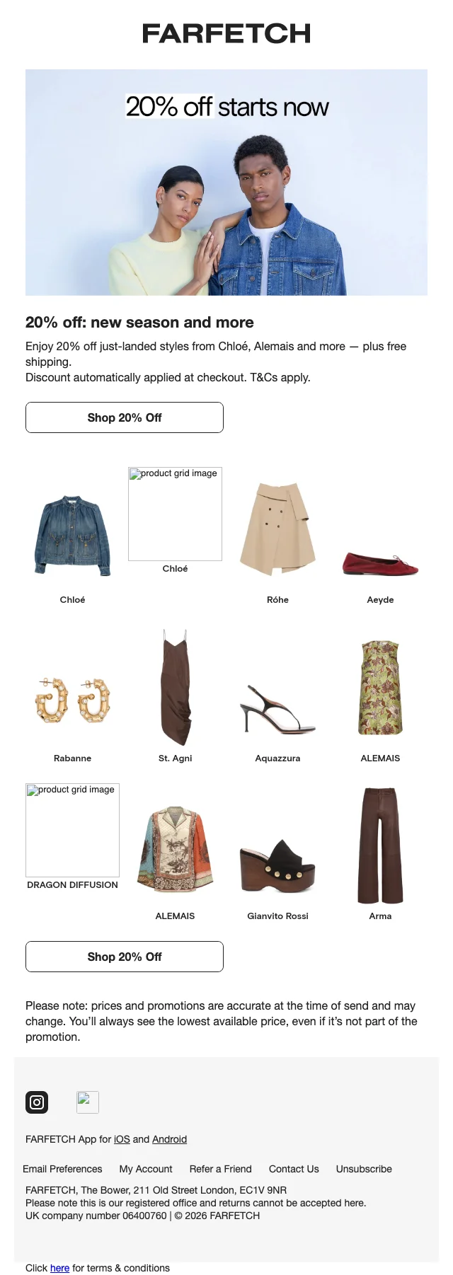 Farfetch slutrea 20% rabatt på utvalda reaplagg upp till 70%