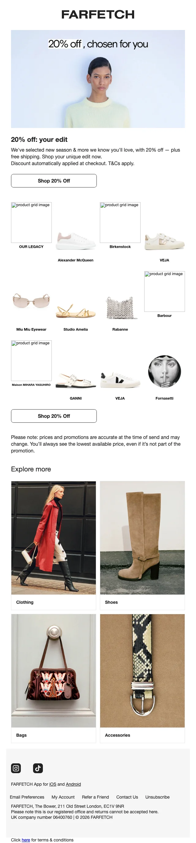 Farfetch personliga edit 20% rabatt och gratis frakt på ny säsong
