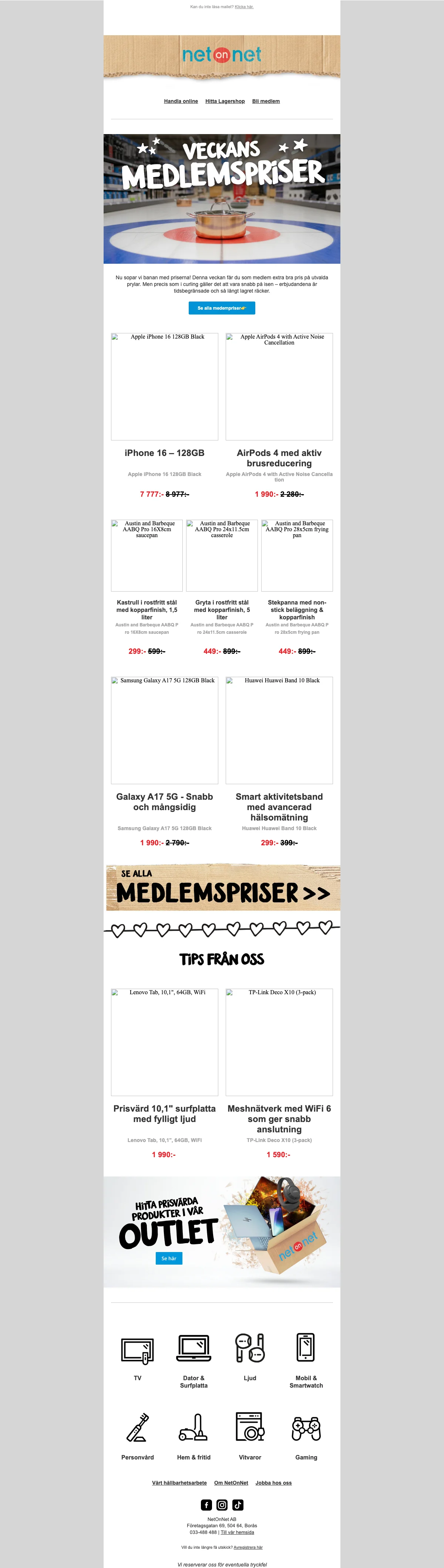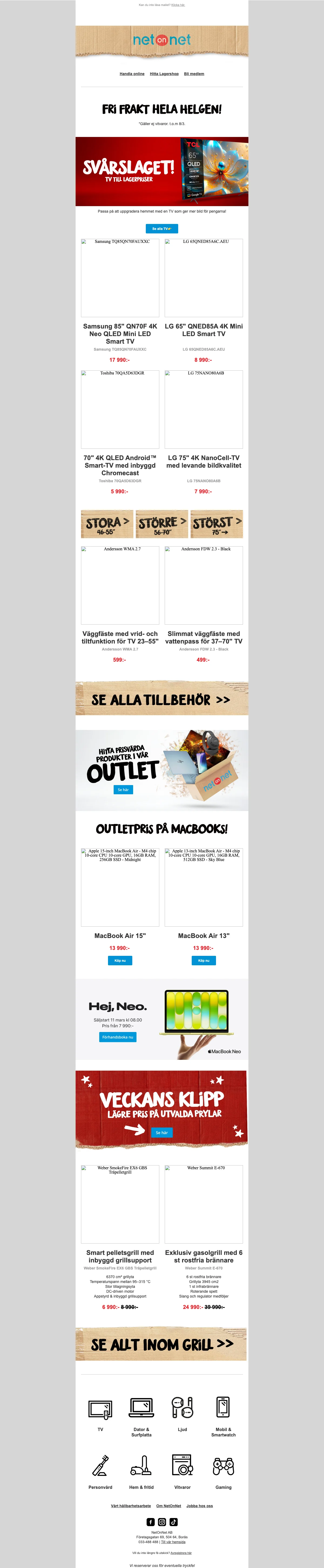 NetOnNet fri frakt hela helgen — gratis frakt t.o.m. 08-03