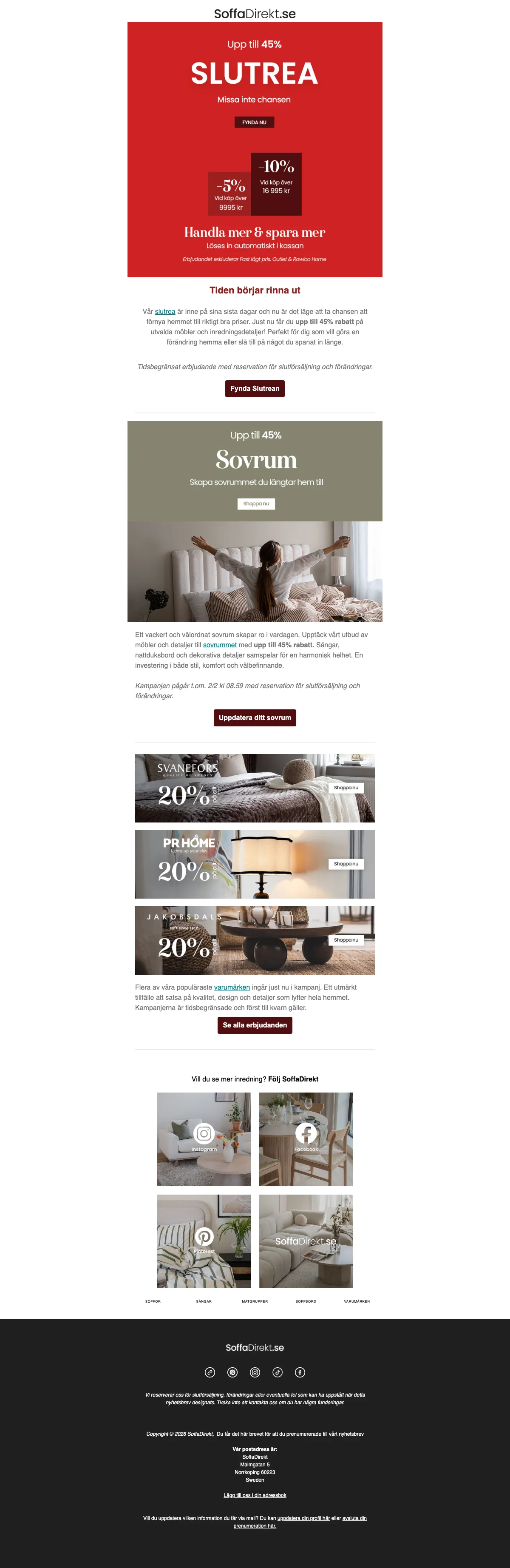SoffaDirekt slutrea sovrumsmöbler upp till 45% rabatt sista chansen