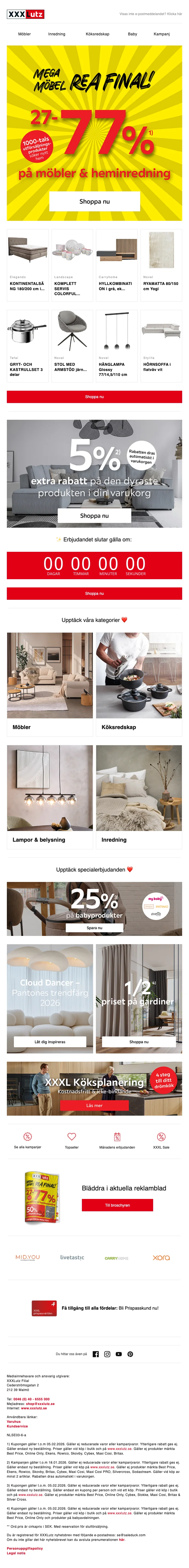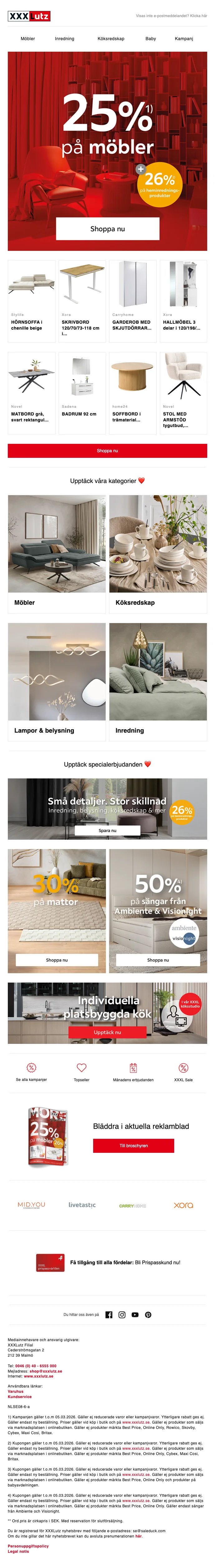 XXXLutz registrera dig för nyhetsbrev och få 50 kr rabatt